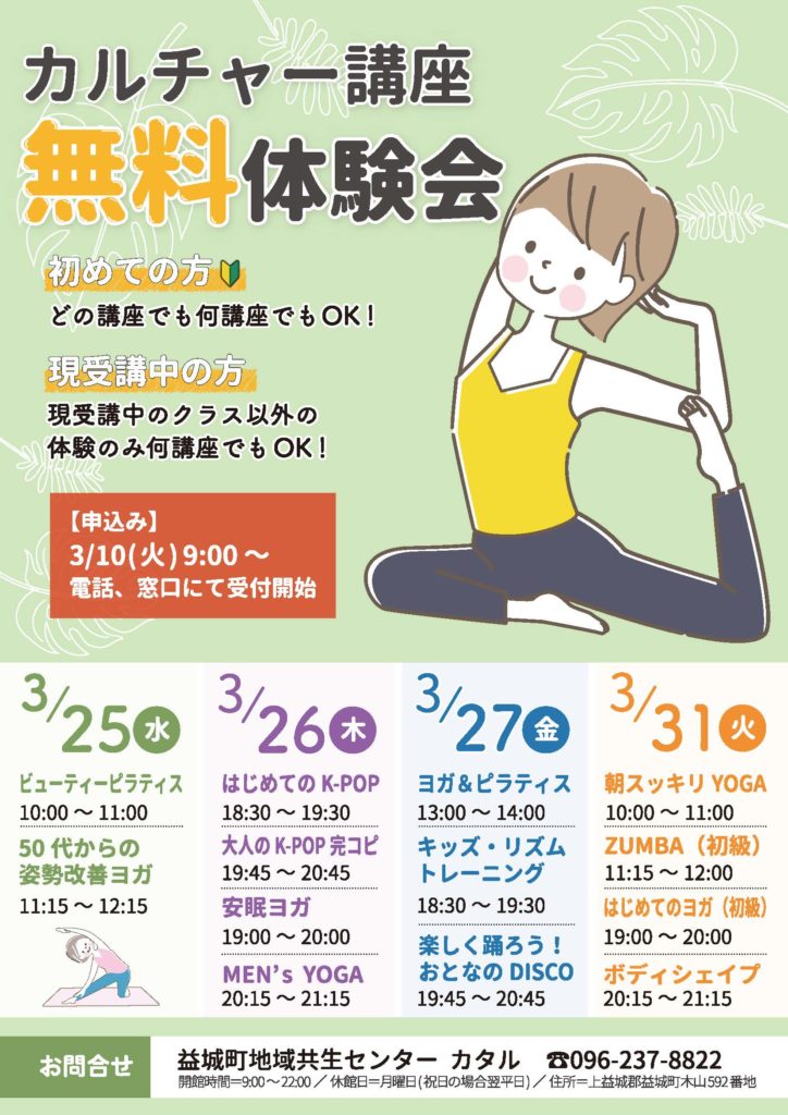 【申込】 3/10(火)9:00〜電話、窓口にて